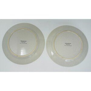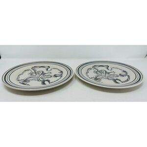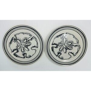 Lovely set of two (2) Pottery Barn luncheon plates in the Sand Dollar pattern – a large sand dollar outlined in black on an off-white crackled field with rustic black trim. These exquisite plates measure 9 3/4” across 1 ” tall. Marking states “Handwash Only Made In China Pottery Barn.”