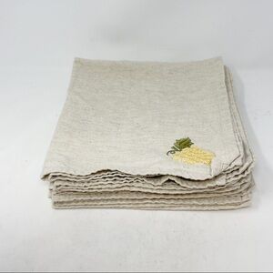 POTTERY BARN Set Of 5 Beige Embroidered Grape Linen Cotton Napkins 19” X 19”. Good pre-owned condition. Gentle signs of wear. A few faint stains. See photos. All measurements are approximate.