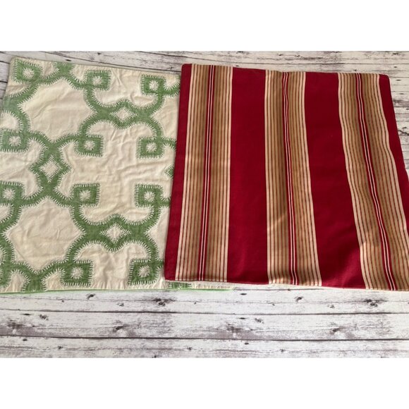 POTTERY BARN Set Pillow Shams Stripes Velvet Red Green COTTON LINEN Pillowcases