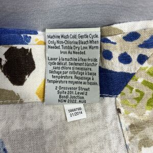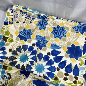 The Pottery Barn XL Rectangle Linen Floral Tropical Tablecloth is a stylish addition to any dining room. Made from 100% linen with a tropical floral pattern in blues, greens, yellows, and beige colors, this tablecloth offers a traditional yet vibrant style. Measuring 70" x 104", this machine washable tablecloth is perfect for adults and unisex use, adding a touch of elegance to your dining experience.