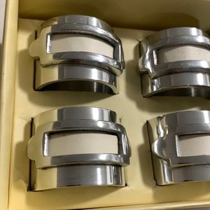 Set of 4 Pottery Barn Placecard Napkin Rings Silver new