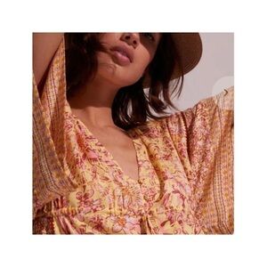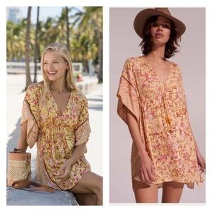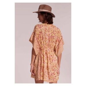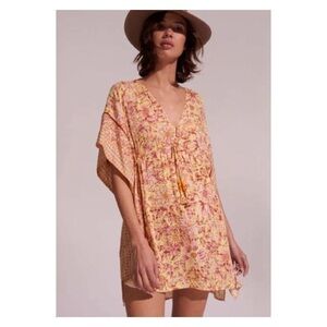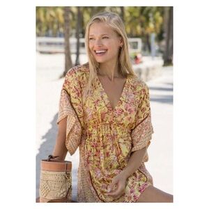 NEW with tags POUPETTE ST BARTH Amaya Kaftan Mini Dress Yellow Jardin Floral Coverup