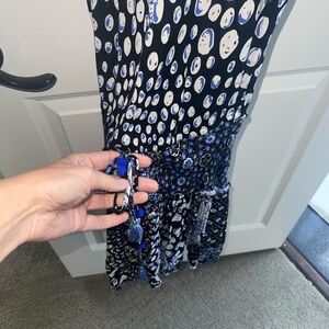 POUPETTE ST BARTH Kila Mini Dress in White Navy Galaxy Floral Dress Tie Waist Sm