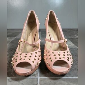 Pre-owned Women's Pour La Victoire Pink Spiked Platform Peeptoe Heels, Good Condition, Minor Scuffs And Scratches, Size 8.5, No Box.