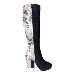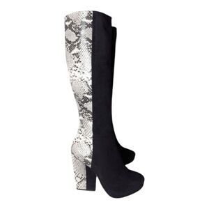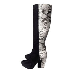 POUR LA VICTOIRE Tall Snakeskin Black Suede Heeled Boot Size 7.5