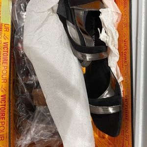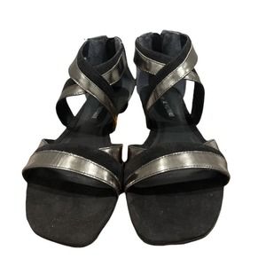 POUR LA VICTOIRE Women's Silver Black Brienne Gladiator Sandals Sz 8