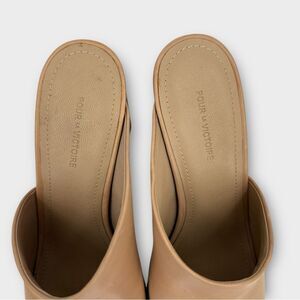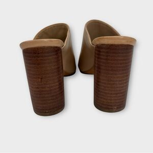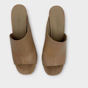 POUR LA VICTOIRE Comfort Helena Open Toe Block Heel Slip On Shoes in Beige Leather Size 7.5