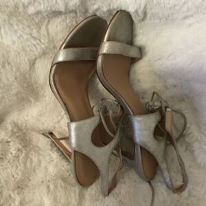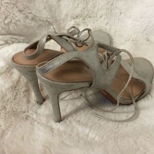 POUR LA VICTOIRE Silver Elisa Leather Lace-Up Strappy Dress Sandal Heels 10