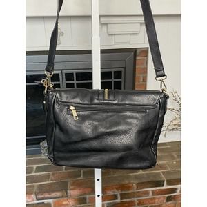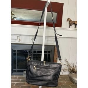 Can be a shoulder bag or a cross body bag , or remove straps and becomes a clutch Size is large with multiple pockets. Some wear on corner and marks