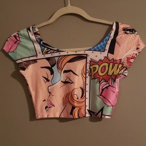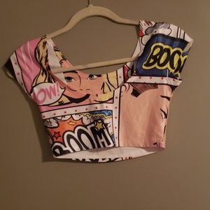 POW! Comic crop top worn once. Polyester/spandex.