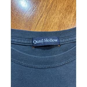 Vintage style POW-MIA military tribute long sleeve t-shirt by Quail Hollow. Features large front graphic with eagle, crossed rifles, and “Some Gave All, All Gave Some” text. Black cotton with sleeve prints. Size tag: [insert size if known]. Perfect for veterans, patriotic collectors, or vintage streetwear enthusiasts.