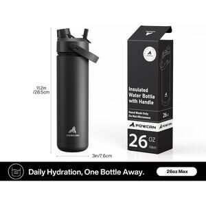 Stay hydrated in style with this POWCAN 26 oz insulated water bottle in the sleek 'Dark Knight' color. It features a convenient 2-in-1 straw and spout lid for easy drinking, whether you're at the gym, hiking, or just on the go.