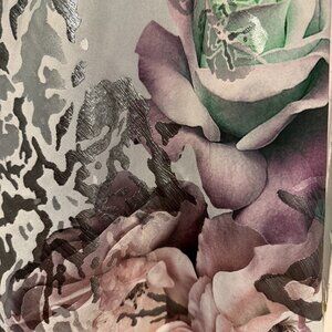 Color: Silver-blue base with multi-tone floral print