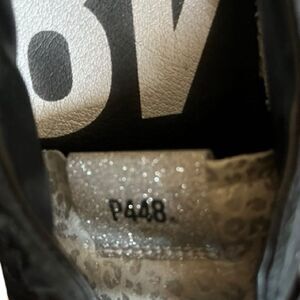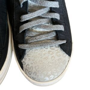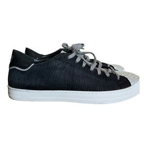 PP448 John Sneaker Animal Print. Black leather upper with metallic silver leopard print front. Footwear that encourages eclecticism and self expression