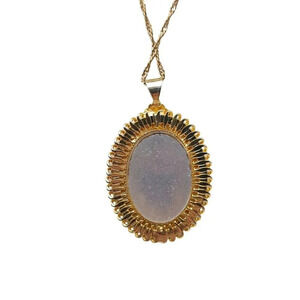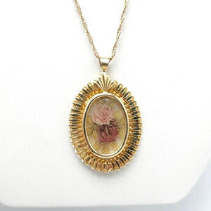 PPC Rose Floral Oval Shape Pendant Chain Necklace Spring Ring Clasp Gold Filled