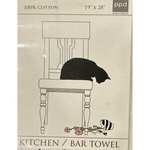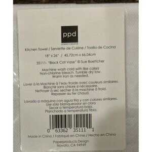 PPD Black Cat Vase 18" x 26" Kitchen Towel Susan Boettcher New with Tags