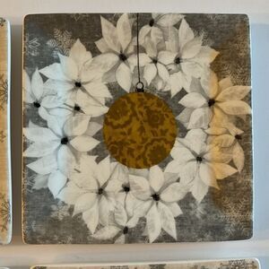 PPD Set of 4 Gold Gray Contemporary Appetizer Christmas Plates Bone China