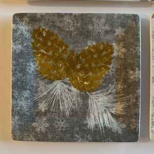 PPD Set of 4 Gold Gray Contemporary Appetizer Christmas Plates Bone China