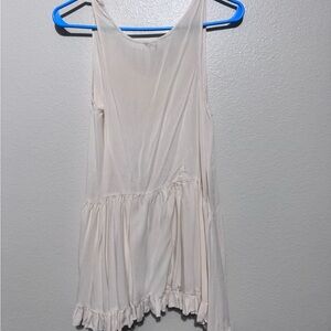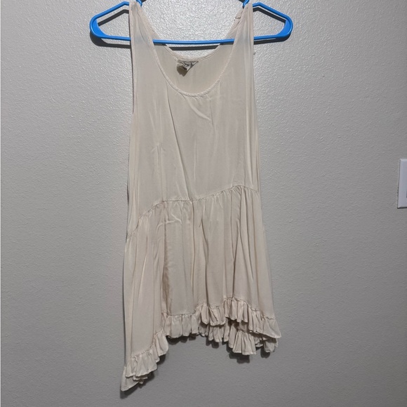Elegant cream tank with ruffle hem. Perfect for a casual chic look.