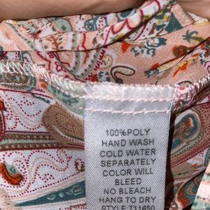 PPLA Peasant Blouse Paisley Pink Green Red Small Women Boho Ladies Ruffle Sheer