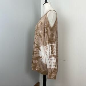 PPLA Petra Tan & White Tie Dye Cold Shoulder Long Sleeve Top Large