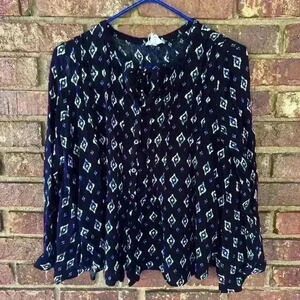 PPLA navy blue and white button up blouse size small