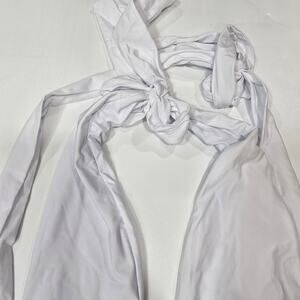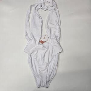 Self: 78% polyamide, 22% elastane Lining: 84% polyamide, 16% elastane Made in Colombia Hand wash Halterneck styling Waist cut-out with attached side tie detail ‼️There is a sticky spot after removing the protective sticker. See all the photos carefully