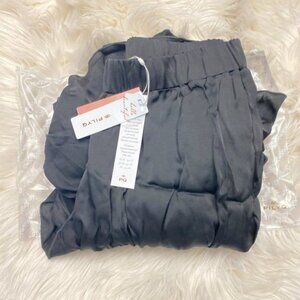 These PQ Black Halsey Pants bring elegance and comfort with their flowing asymmetrical hem and ruffle trim. Made from viscose, they offer a breathable and lightweight fit, perfect for a stylish yet relaxed look. The elasticized waist ensures comfort and adaptability, making them a versatile addition to any wardrobe.