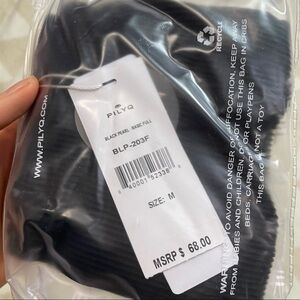 PQ Pilyq Anthropologie Black Pearl Ribbed Ruched Basic Bikini Bottoms Full