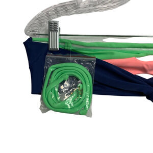 New without tags PQ Swim Bandeau Bikini Top Stripe Green Pink Navy Back Wire Sides Back Tie Tube Top Attachable Straps Small New Condition 79% Recycled Polyamide 21% Elastane