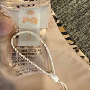 New with tags D-cup tan, brown and black bikini top by PQ Swim in excellent brand new condition.