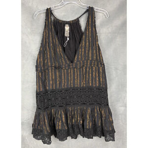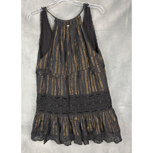 PQ Swim Midnight Jesse Reversible Babydoll Dress XS/S Black/Gold Crochet Beach