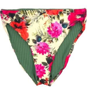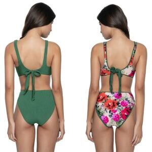 PQ Swim Reversible Bikini Top Bikini Bottom Set Emerald Green Ribbed on one side and Desert Rose Floral Print on other side.