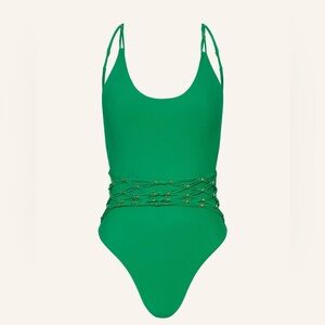 PQ Swim Seaweed Beaded Brynn One Piece Size Large Green One-Piece Swimsuit NWT