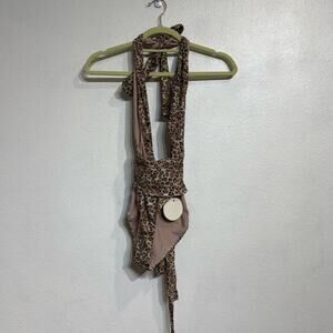 PQ Swim Tan Leopard Alex One Piece Sz L NWT