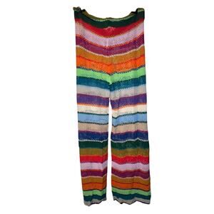 PQ Womens Multicolor Crochet Knit Rainbow Striped Wide Leg Bree Boho Pants XS/S