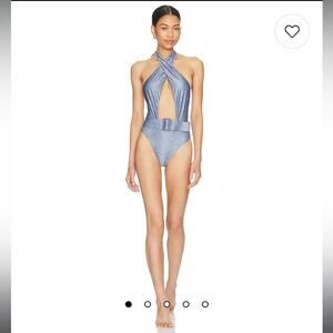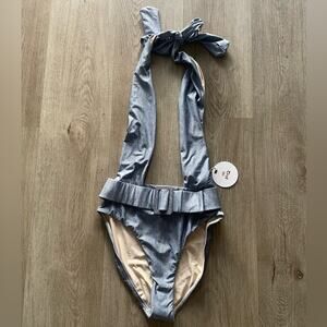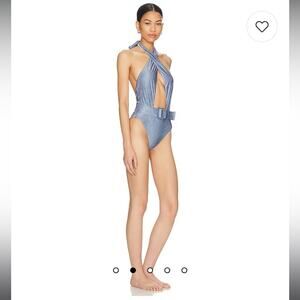 PQ swim Alex indie blue belted one piece bikini swimwear size small NEW