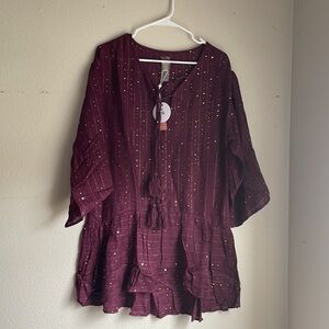NWT PQ swim “Angelica sequenced tunic” in Sangria size XS/S.