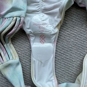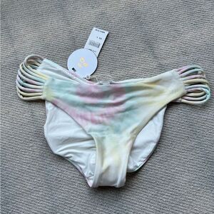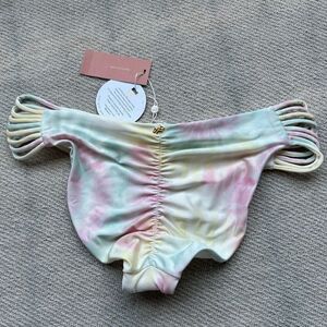 PQSwim Isla Ruched Tie Dye Swim Bikini Bottom Size Large NWT $78 Scrunch Butt