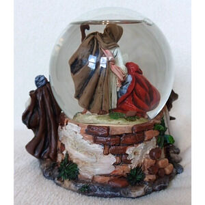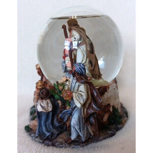 Musical snow globe. Depicts the Nativity scene, featuring Joseph, Mary, Jesus, & the Three Wise Men. Plays a soothing tune as the snowflakes swirl around the scene. The intricate details & beautiful design make it a perfect addition to any Christmas or Nativity collection. There is a sticker on the bottom saying PR & Made in China. There are no other indicators of a brand. Stands approximately 5 1/2" tall. Pre-owned condition, but the only issues I can find are 3 places on the cape of 1 of the 3 Wise Men where it is chipped & the 3 screws that hold the music box in place on the inside are missing. Still plays beautifully. What you see is what you get, so look at the pictures & judge for yourself. Comes from a smoke-free home. I try to be as honest as possible while describing the condition of my items. You are buying this item(s) AS-IS. Please look carefully at all pictures as they are part of the condition description and ask any questions before purchasing.