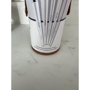 Complete endless makeup looks with this luxe PÜR x CARE 5-Piece Cruelty Free Brush Set with Holder—each densely packed makeup brush is composed of wavy and straight synthetic fibers for a more controlled application and less fallout.