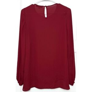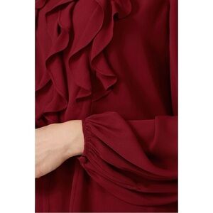 PRABAL GURUNG Burgundy Chiffon Ruffle Front Jewel Neck Puff Long Sleeve Blouse 6