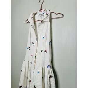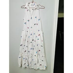 The Prabal Gurung x Rent the Runway (RTR) White Cotton Floral Embroidered Sleeveless Midi Dress in size 10 is a beautiful blend of modern elegance and timeless femininity. Crafted from a breathable cotton-spandex blend, this dress features intricate floral embroidery that adds a touch of romance to its crisp white fabric. The sleeveless design and midi length offer a flattering silhouette, while the collared neckline and front button closure provide a structured, shirt-dress style. Perfect for garden parties, brunches, or daytime events, this dress combines comfort with chic sophistication.