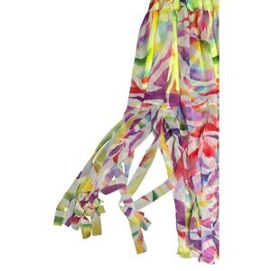This Prabal Gurung skirt is an explosion of color and movement. Crafted from lightweight chiffon, it features an abstract print in vibrant hues. The pleated design and asymmetrical silhouette add a feminine and modern touch. The elastic waistband with lime green detailing adds a distinctive touch. Perfect for a striking and original look, this skirt is a must-have for lovers of high-end fashion.