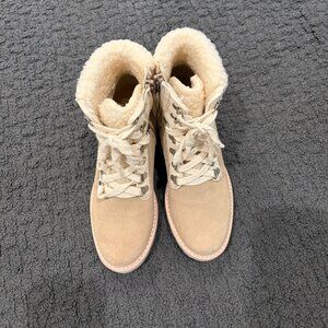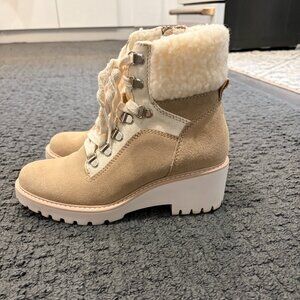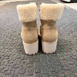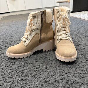 PRACTICALLY BRAND NEW *** Dolce Vita Womens Helix Suede Lace Up Lug Heel Boot Faux Fur Tan Zipper Sz: 6.5