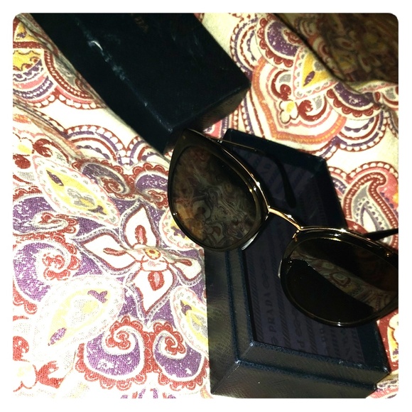 Georg /Beautiful Brown /Gold *PRADA* Sunglasses . Original Box & Case Glasses Are In PERFECT CONDITION