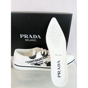 PRADA 1E617M WHITE BLACK POLKA CANVAS LOGO POINTY CAP LOW TOP SNEAKERS 38.5