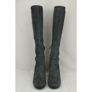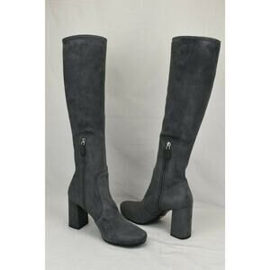 GRAY SUEDE ZIPPER STRETCH KNEE HIGH HEEL BOOTS
