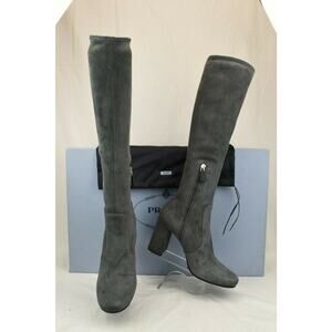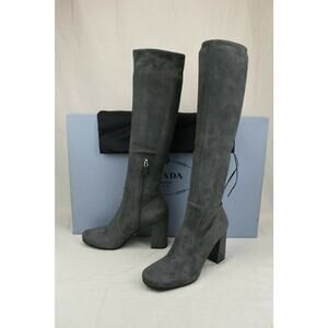 PRADA 1W192F GRAY SUEDE ZIPPER STRETCH TALL KNEE HIGH HEEL BOOTS 40