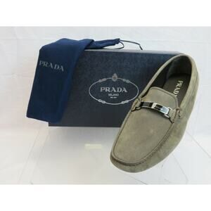 PRADA 2DD159 KHAKI FUMO SUEDE LOGO DRIVING MOCCASINS LOAFERS 7 / US 8 ITALY